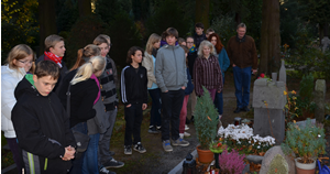Dazu organisierte Pfarrer Christian Mertens eine Führung mit Markus Weisheit: 17 Konfirmanden besuchten Gräber auf dem Siegburger Nordfriedhof und setzten sich bewusst mit der Trauerkultur, die sich auch in der Gestaltung individueller Grabsteine ausdrückt, auseinander. Anschließend konnten sie in der Steinmetzwerkstatt selbst Steine behauen und den Beruf des Steinmetzes kennenlernen.